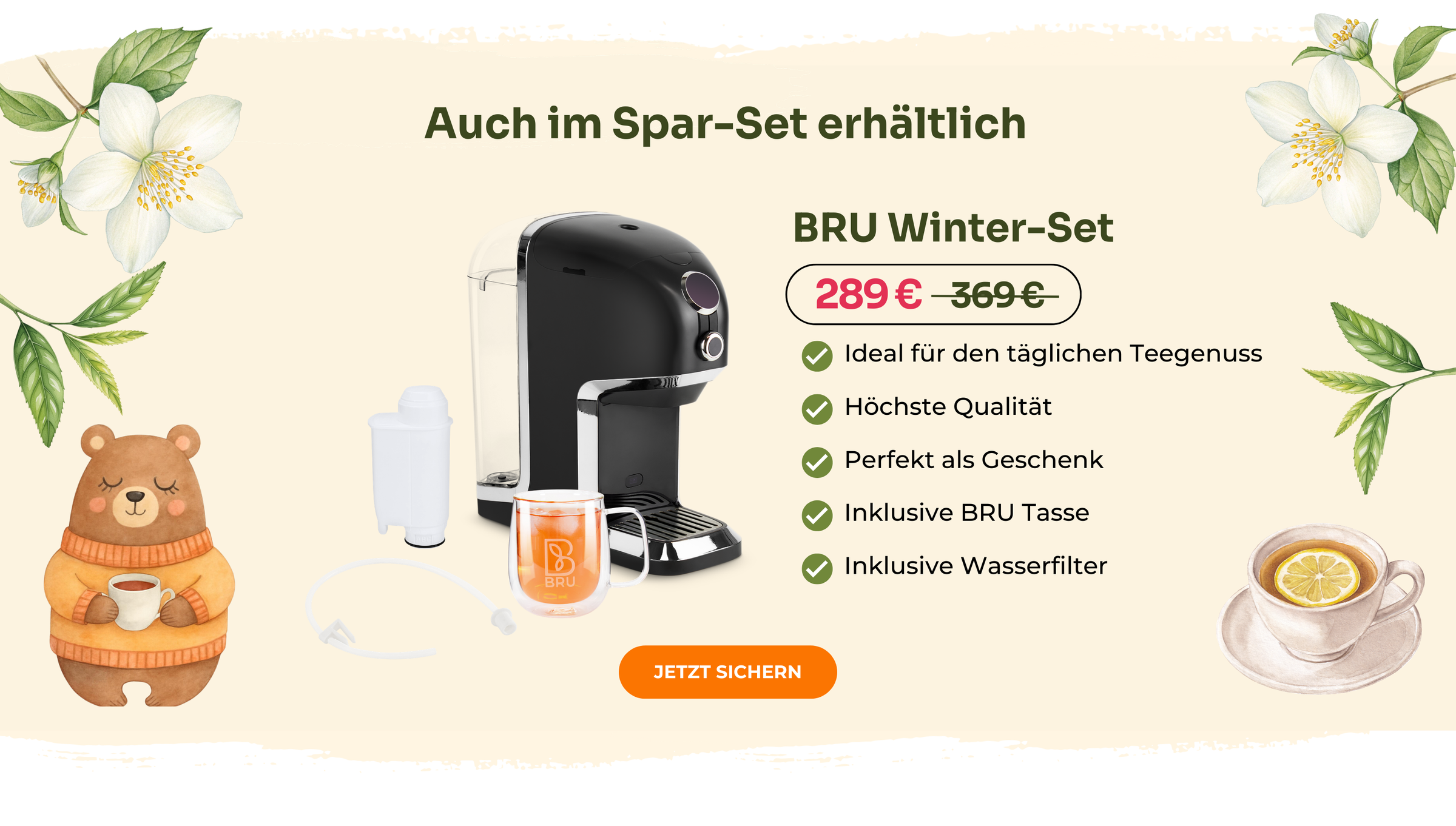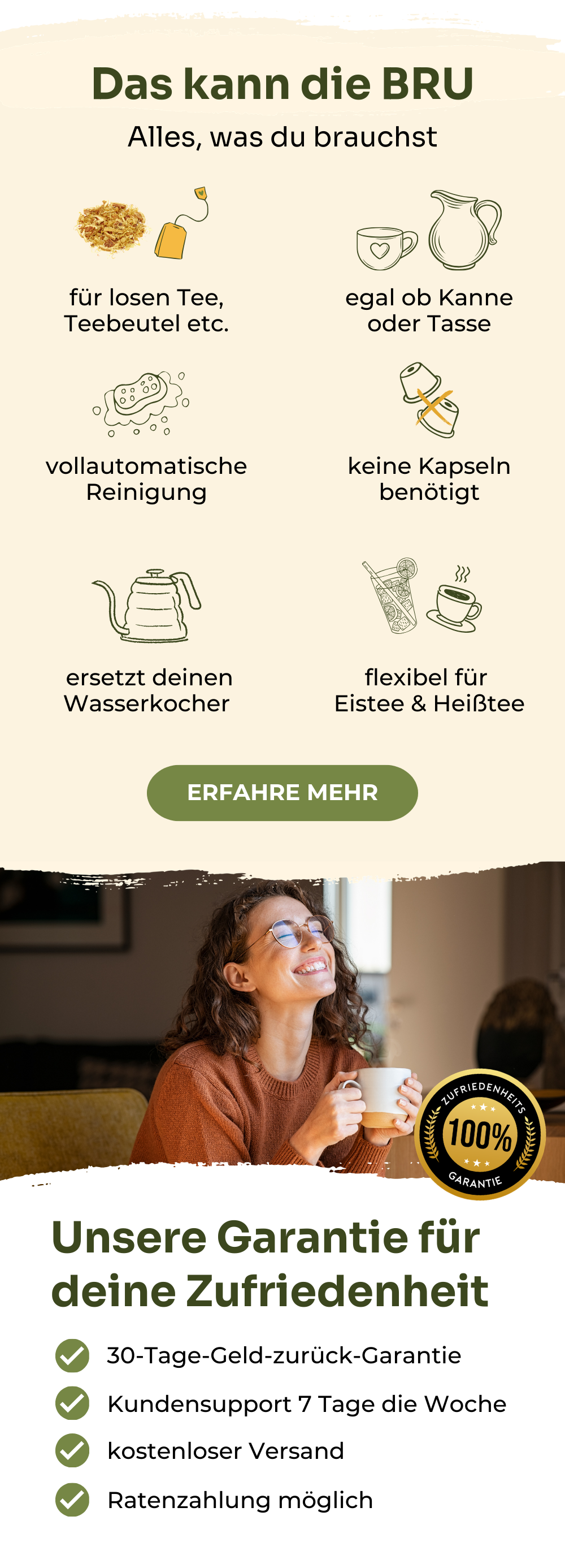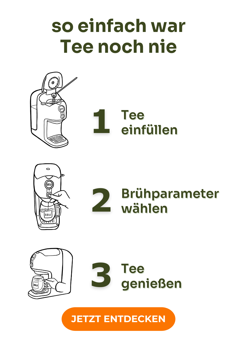 Bei BRU schätzen wir die Tradition, jeden Tee mit der optimalen Temperatur und Zeit aufzubrühen. Deshalb haben wir diesen Vorgang für dich automatisiert.