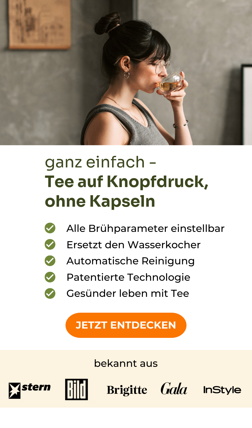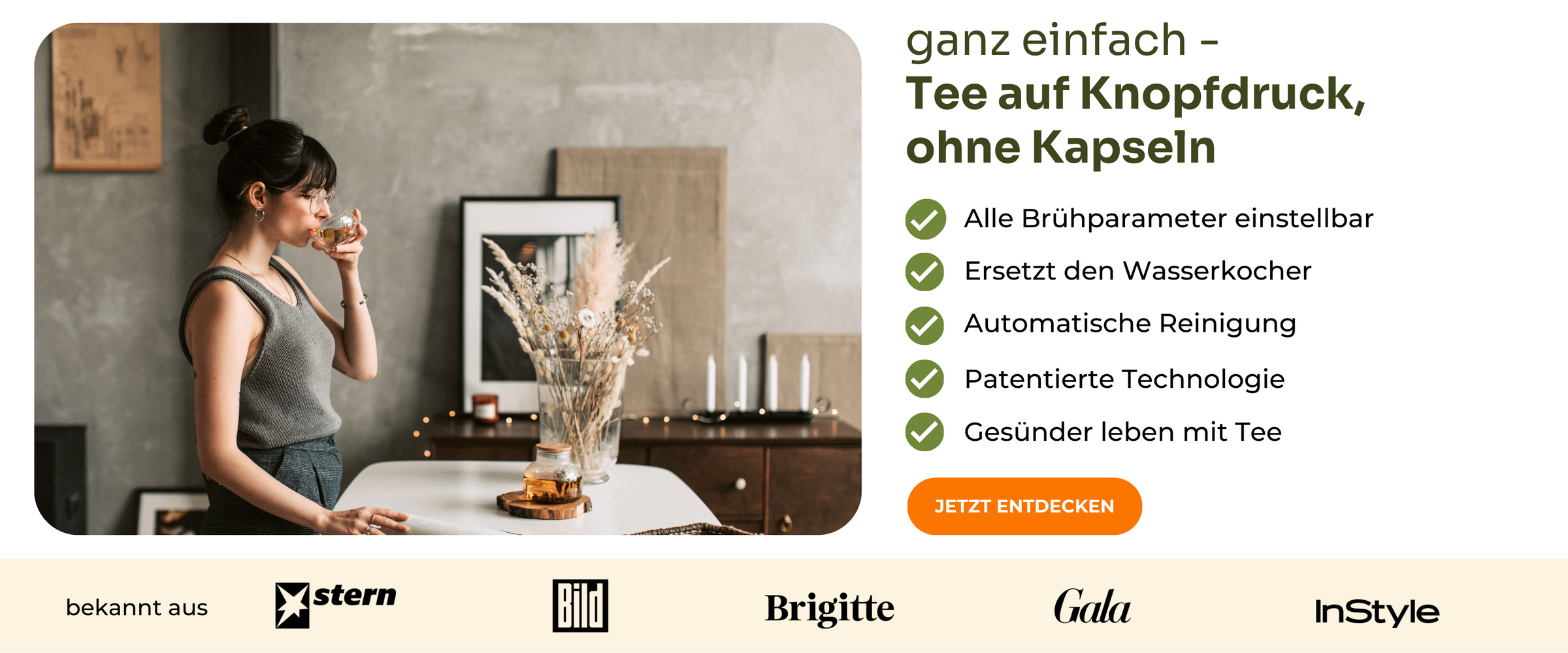 Der BRU Teeautomat funktioniert mit losem Blatt-Tee, Teebeuteln und jeglicher Art von Kräutern.