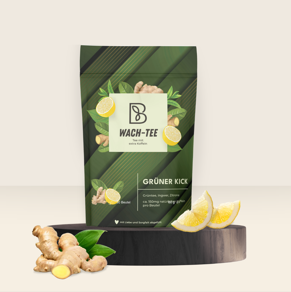 Grüner Kick vereint die belebende Kraft von grünem Tee mit der Frische von Zitrone und der würzigen Schärfe von Ingwer – ergänzt durch einen sanften Koffein-Kick für langanhaltende Energie. Dieser Energy-Tee ist die perfekte Wahl für alle, die auf natürliche Weise Körper und Geist in Schwung bringen wollen. Genieße den spritzigen Geschmack.