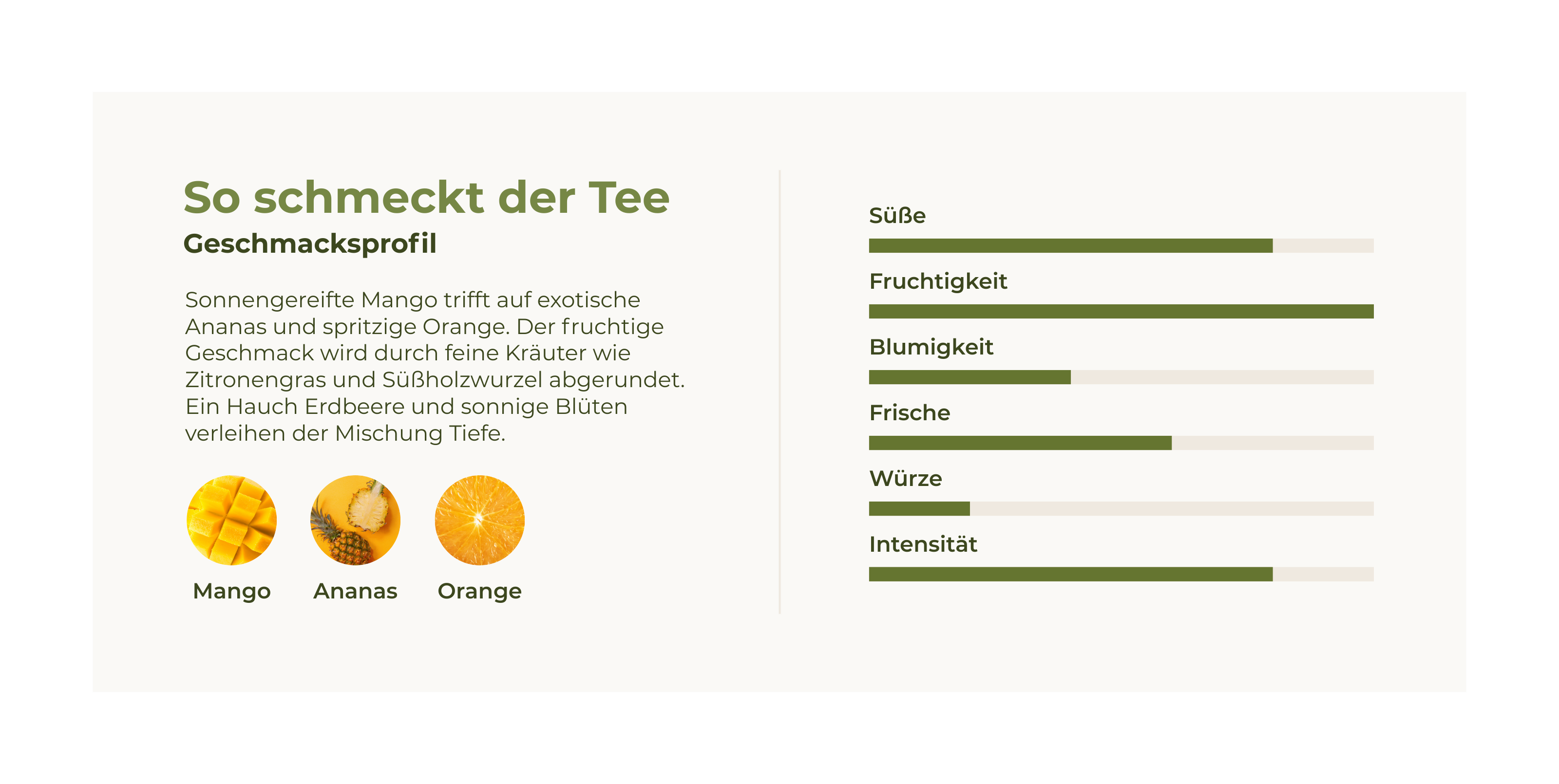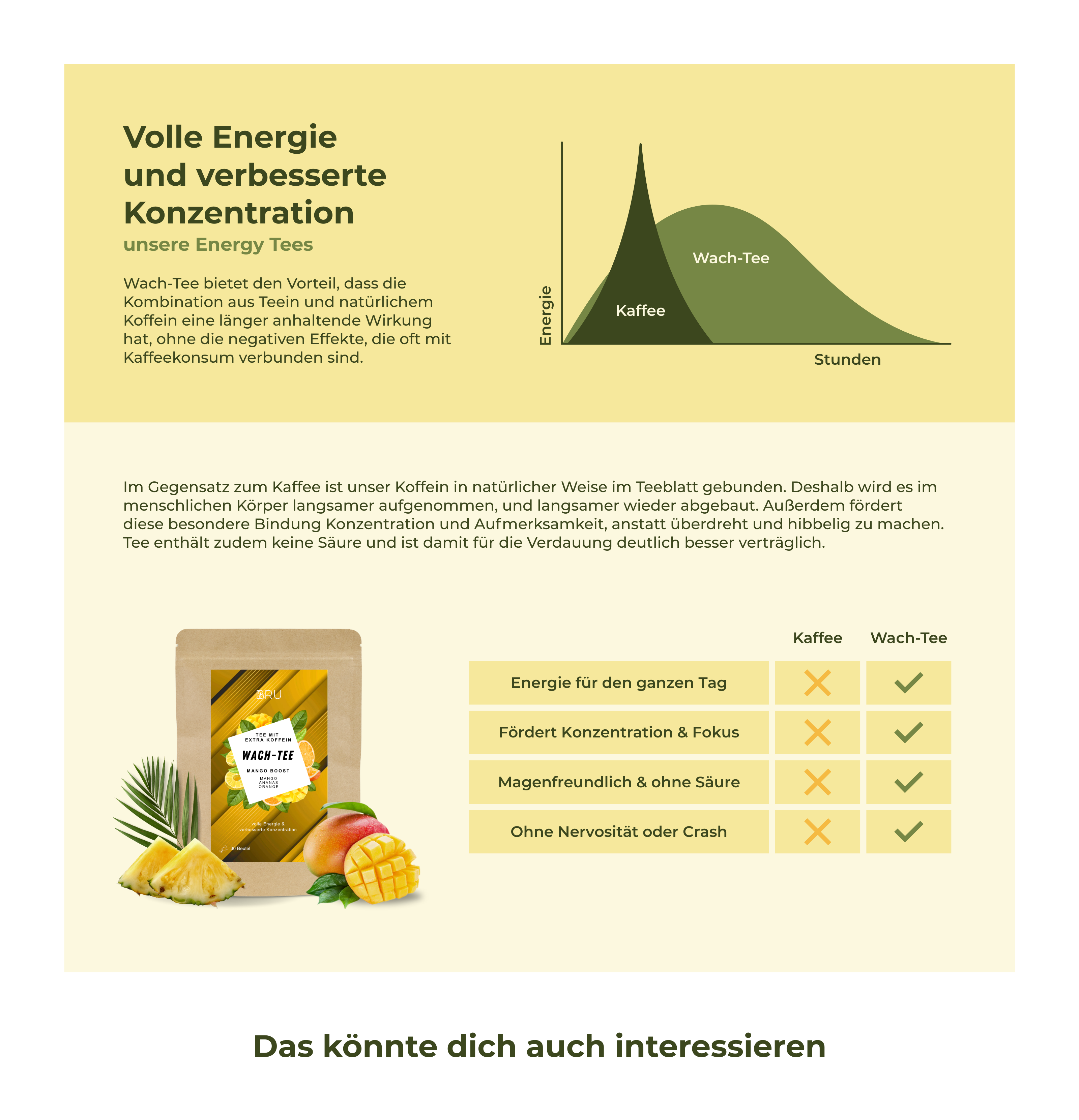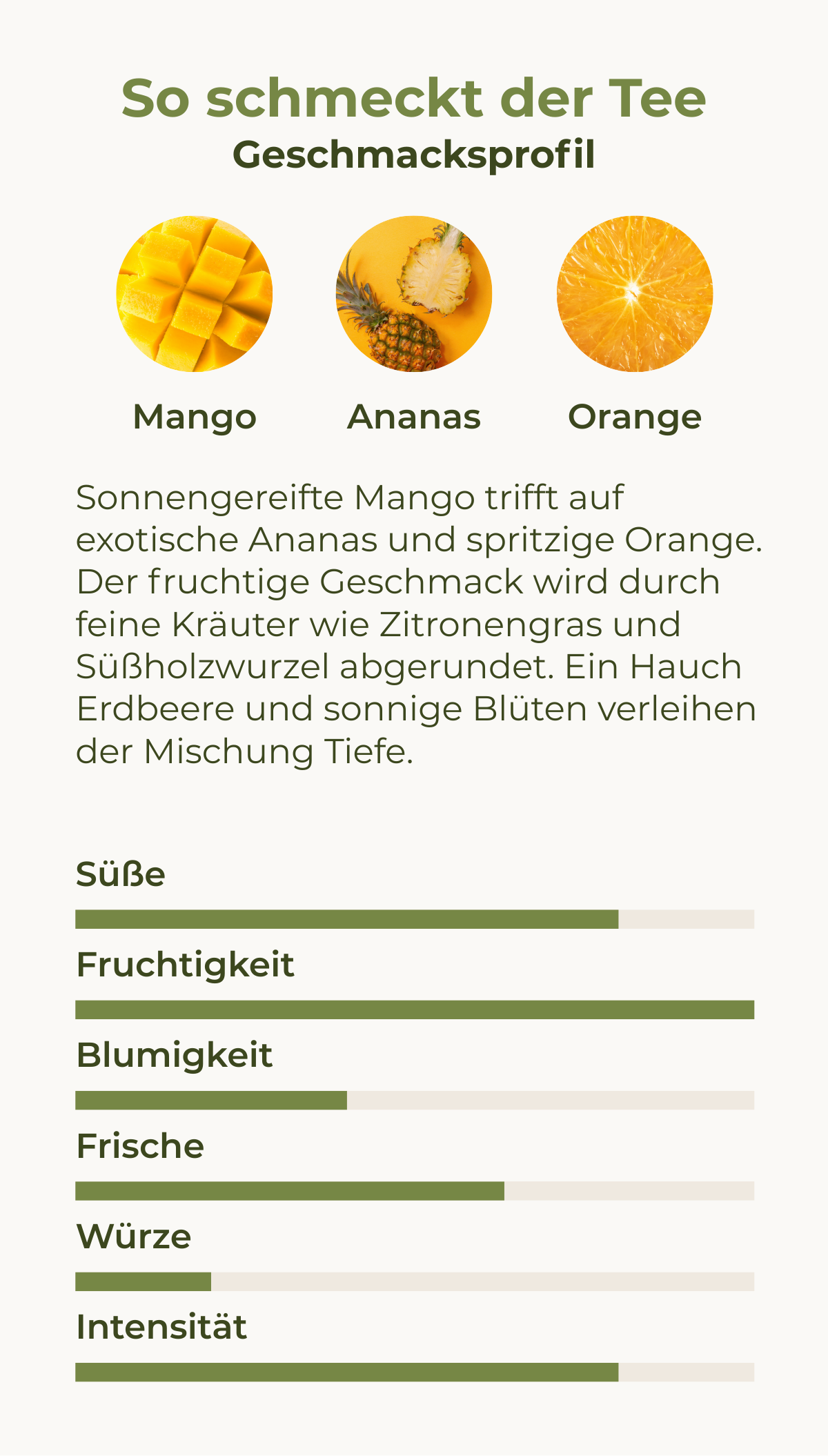 Mango Boost: Die exotische Kombination aus Mango, Ananas und Orange liefert nicht nur Geschmack, sondern auch Energie – dank natürlichem Koffein. Perfekt, um dich auf natürliche Weise zu erfrischen und zu beleben.