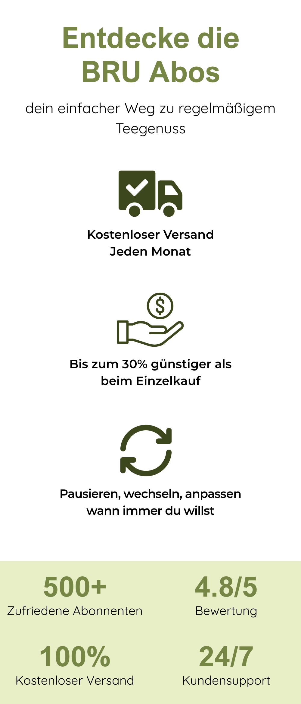 Unsere BRU-Abos bieten die Möglichkeit, dein Abonnement zu pausieren. Bitte beachte, dass dies jeweils nur für den folgenden Monat möglich ist.