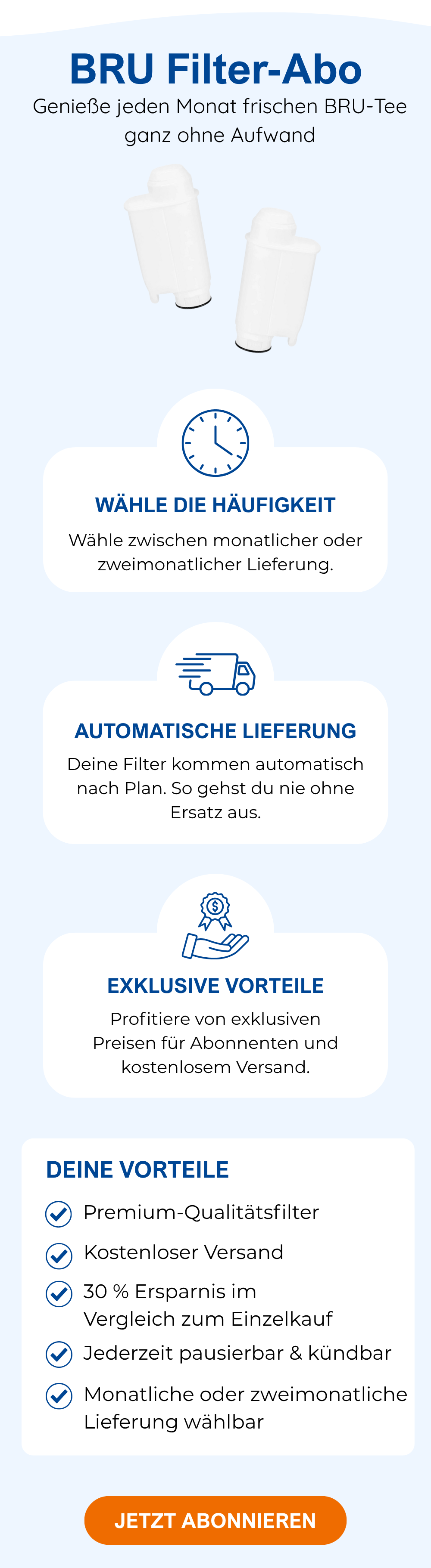Du erhältst deinen ersten Tee oder Filter 1-2 Werktage nach deiner Bestellung. Deine nächste Bestellung wird einen Monat später am selben Tag automatisch ausgelöst.