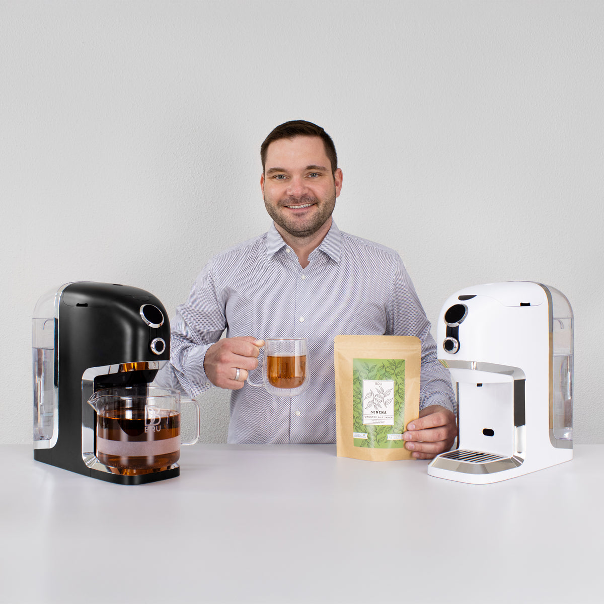 Als leidenschaftlicher Teetrinker und Ingenieur begann ich 2019 mit der Entwicklung einer Teemaschine, die den Brühprozess maximal vereinfach – perfekter Tee auf Knopfdruck, ganz ohne lästige Kapseln. Einige Jahre später wurde aus dieser Idee Realität:
