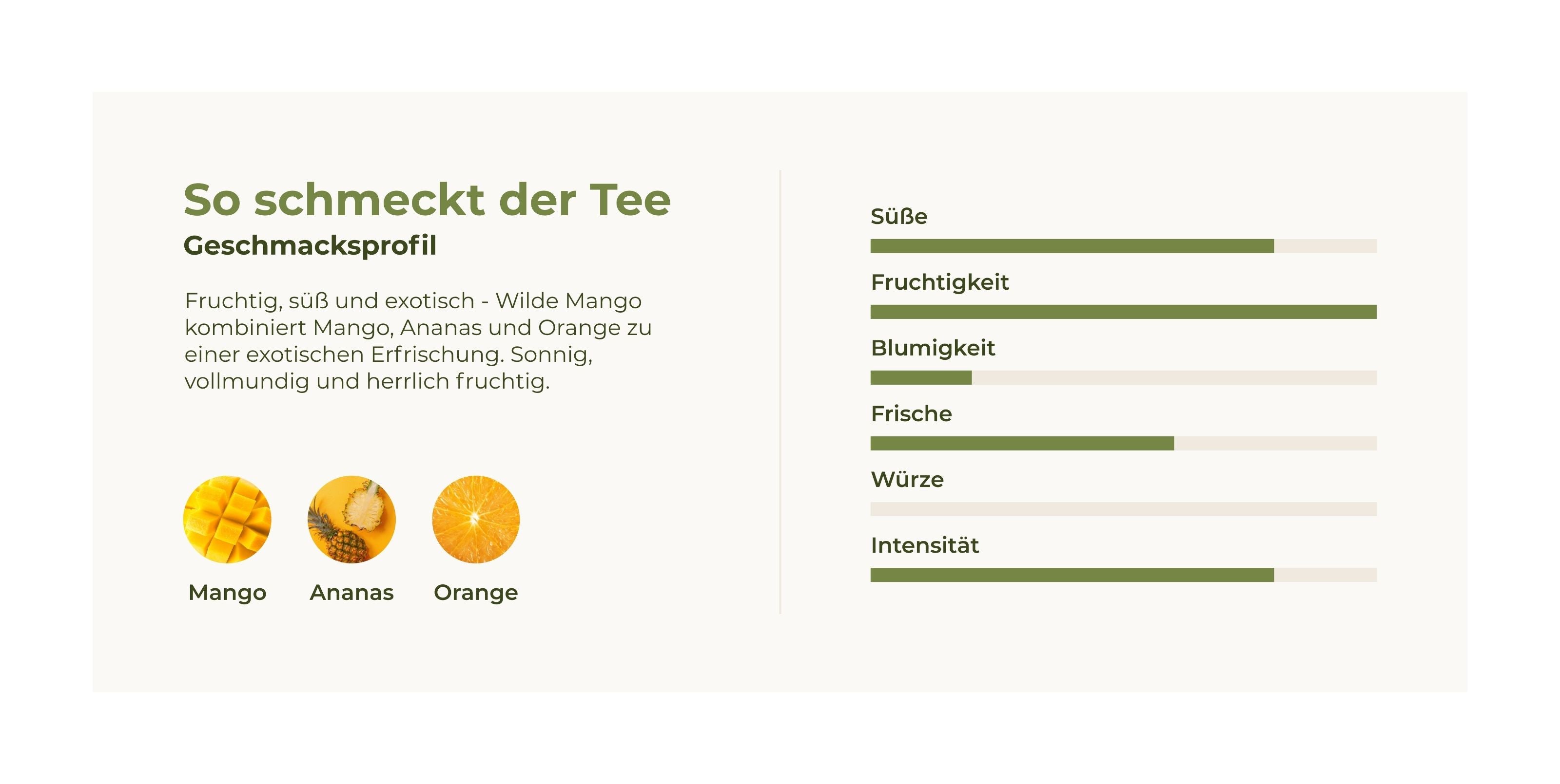 Tauche ein in das fruchtige Aroma sonnenverwöhnter Mangos und erlebe einen Hauch von Sommer in jeder Tasse.