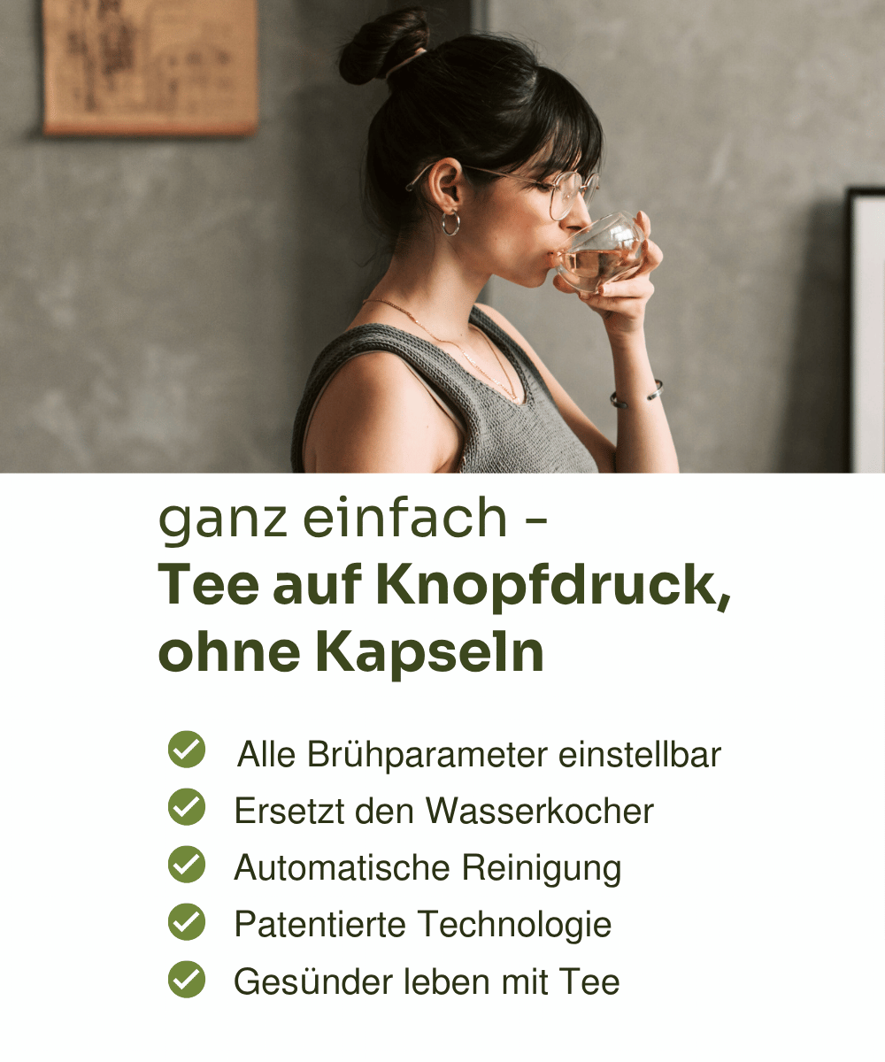 Dazu kommt es jedoch auf die richtige Temperatur und Brühzeit an – nur dann entfalten sich gesundheitsfördernde Wirkstoffe und Aromen im vollen Ausmaß. Genau das übernimmt der Teeautomat von BRU.